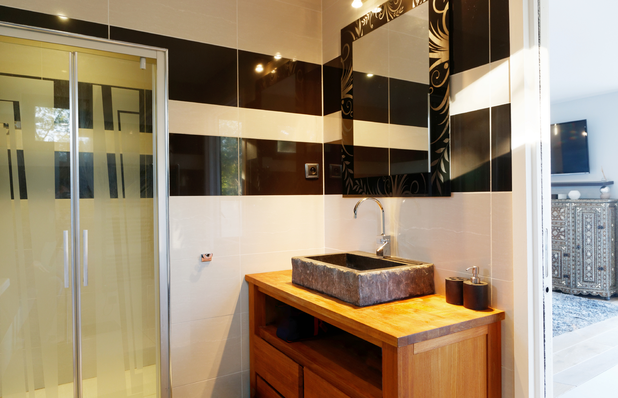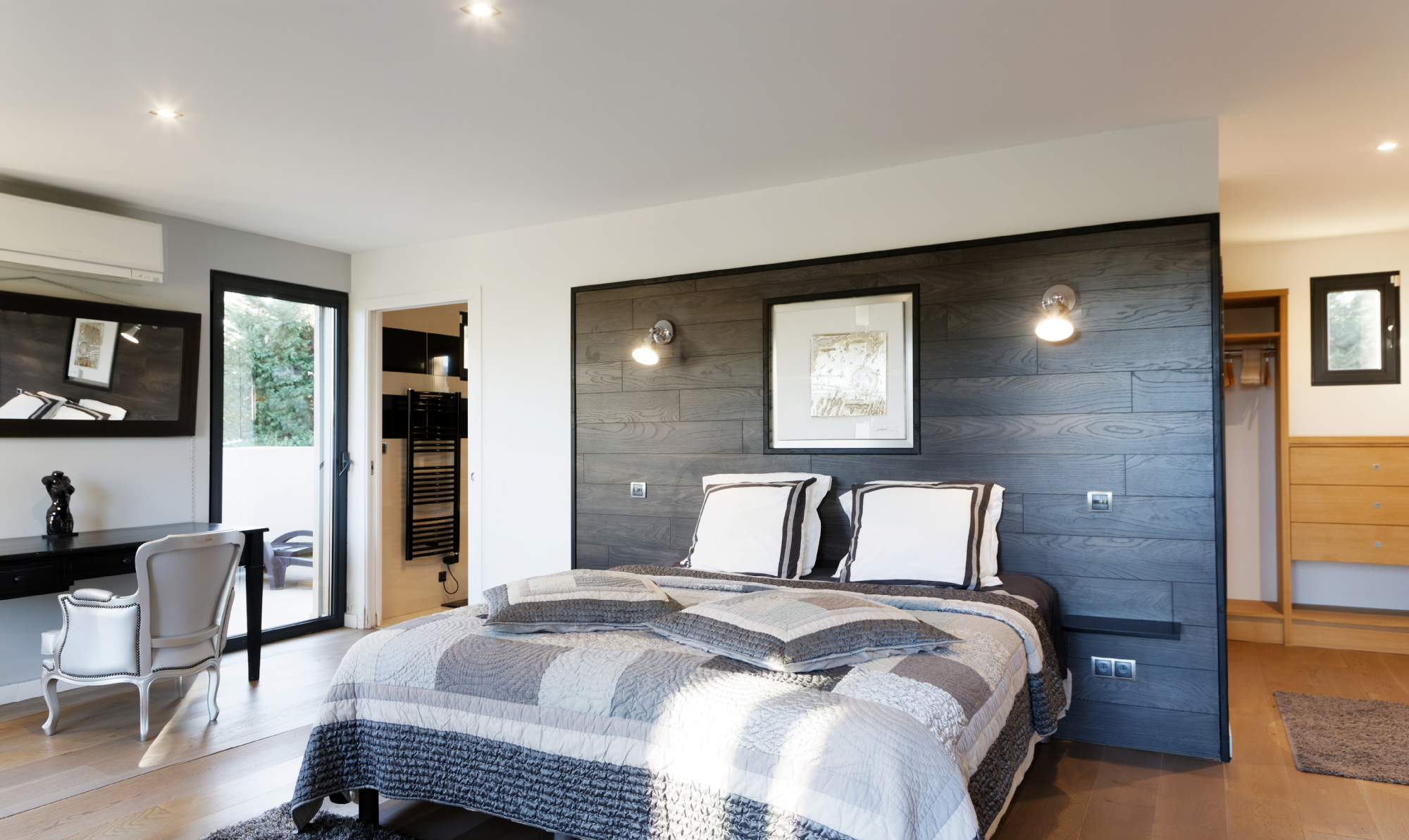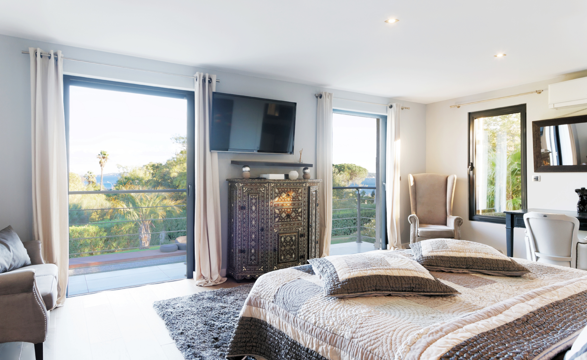 Le 1er étage possède 3 chambres doubles, salle de douche en suite. Ensuite, une chambre plus spacieuse avec baignoire jacuzzi, douche , wc et dressing avec un généreux balcon vue mer.