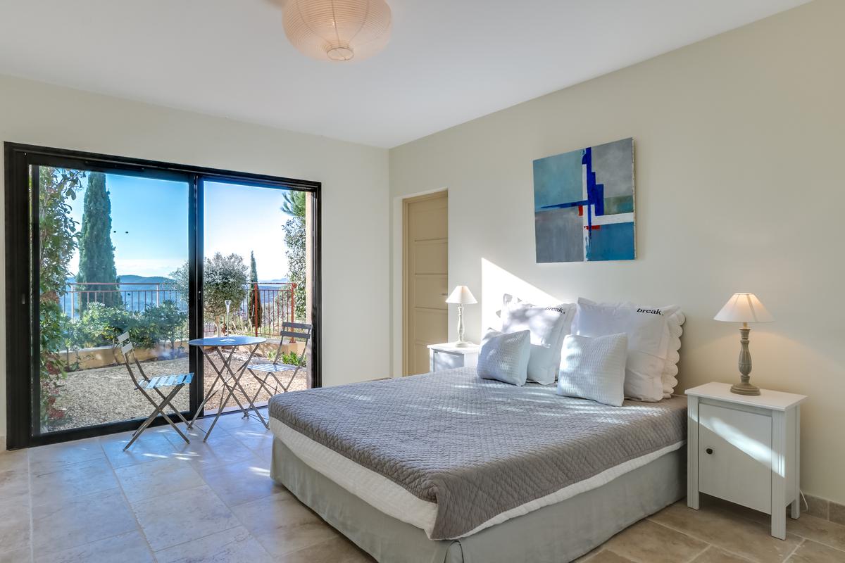 En fait, un petit bijou avec ses ruelles fleuries et ses maisons aux toits de briques roses. En descendant vers la côte à travers les forêts de pins et les vignobles. Puis, vous découvrez les plages face aux Iles d’Or avec leur eau pure et cristalline. Il y a une vue à couper le souffle de ce paysage depuis la villa, perchée au sommet, juste à côté des ruines du château. De plus, située à deux minutes à pied du centre ville avec ses magasins et restaurants.