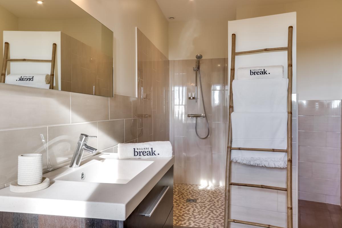 – Chambre 6, deux lits de 90 cm, salle de douche attenante (douche et toilettes)