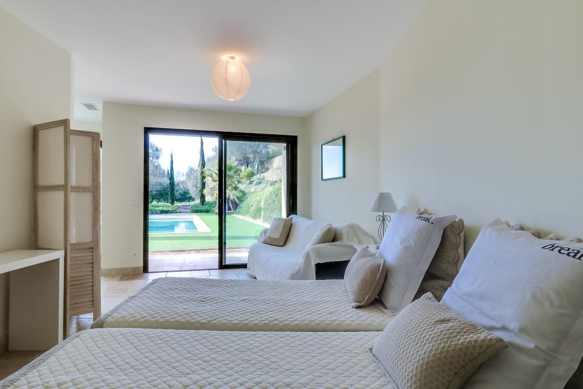 La propriété est entourée d’un jardin de 2 500 m2 en terrasse luxuriante et verdoyante. En effet, cette propriété comprend une maison principale et une annexe au-dessus, à proximité de la piscine. La villa Ile D’Or, Spacieuse et lumineuse, décorée avec goût et une élégance discrète. Cette villa offre une vie d’aisance et de confort avec ses six chambres à coucher et de grands espaces de vie communs.