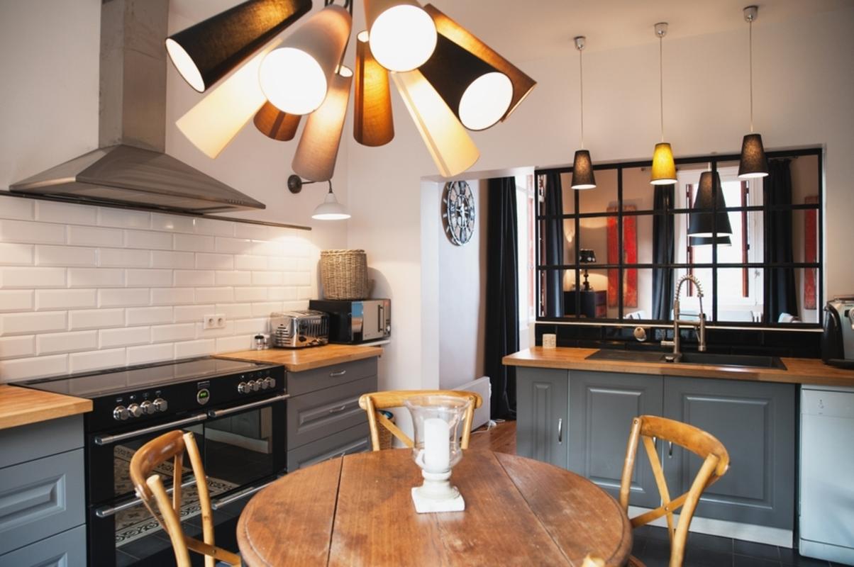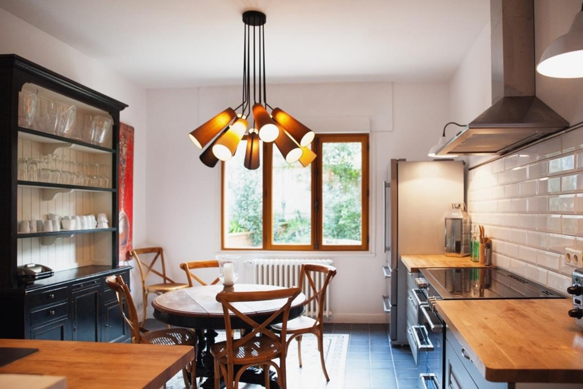 Au rez-de-chaussée, depuis les marches avant, il y a les chambres communes trois magnifiques salles de séjour faisant un grand espace de vie, où chacun peut trouver son endroit préféré. Notre préférée est la véranda avec trois murs ouverts sur l’extérieur avec de grandes fenêtres, donnant l’impression d’être dans un aquarium vert. La cuisine est un rêve cordon bleu, avec une gamme commerciale et des équipements ultra-modernes. Vous pouvez manger à la petite table en bois, mais de grands repas peuvent être servis dans la salle à manger colorée, moderne et chaleureuse. Il y a aussi une chambre double et une salle d’eau à ce niveau.