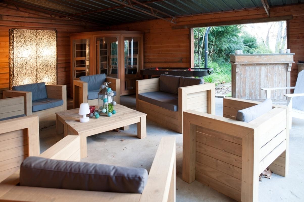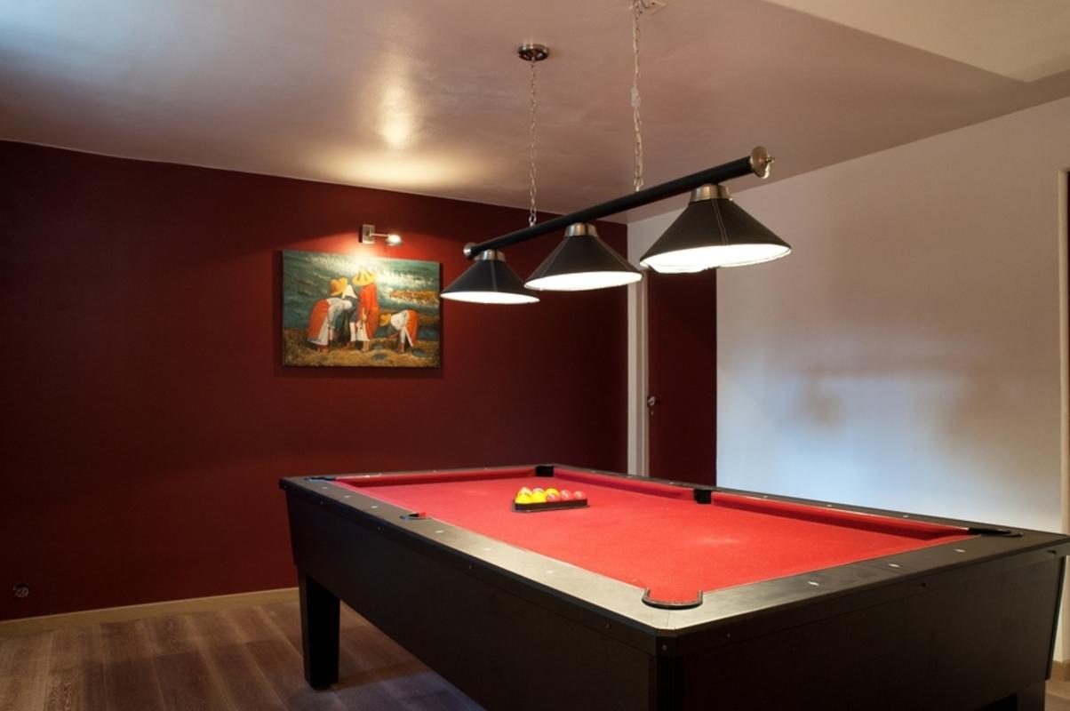 Le plaisir commence dans le jardin, le salon extérieur sur la terrasse est magique, aussi romantique que vous le souhaitez, où vous pouvez vous détendre à l’ombre des grands arbres. Au bord de la terrasse, une longue table permet d’accueillir de grands repas familiaux. Une autre terrasse couverte est un patio avec sauna et une table de hockey à air. Un peu plus loin, le Jacuzzi vous encourage à vous prélasser dans un écran de verdure. Les jeunes (et moins jeunes !) apprécieront aussi la table de ping-pong. A l’intérieur, au rez-de-jardin, il y a une véritable salle de billard et trois chambres. Une chambre double avec salle de bain et dressing ensuite – Une chambre queen avec dressing – Une chambre double – Une salle de bain partagée.