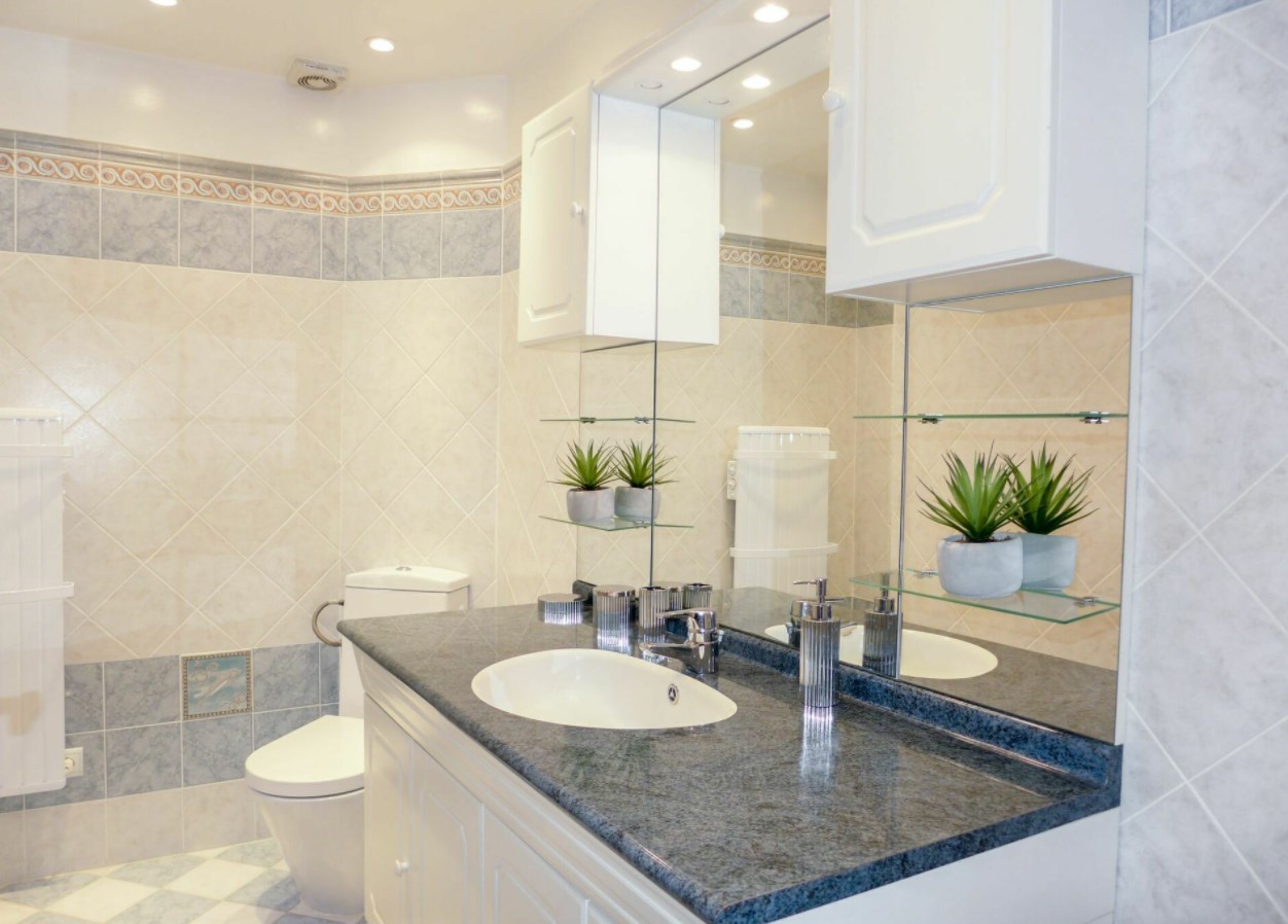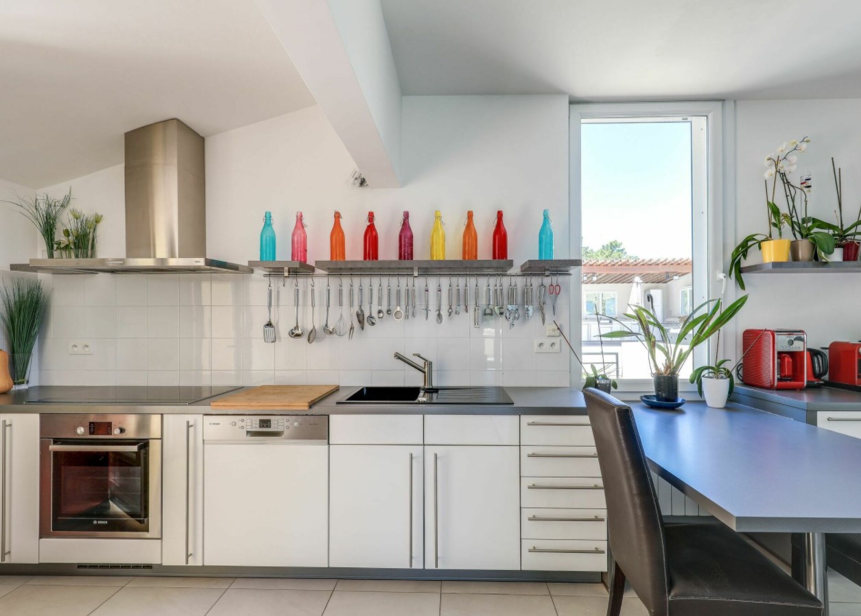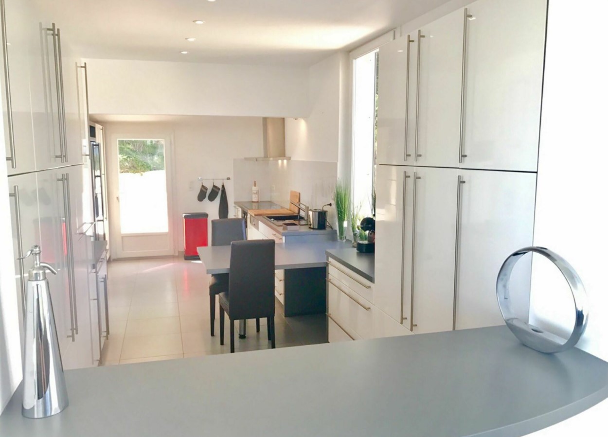 En fait, la composition de la villa est fonctionnelle, entrée avec WC et douche, un salon avec accès direct sur la terrasse. De plus, un grand séjour, spacieux et lumineux donne directement sur la terrasse piscine. La cuisine ouverte entièrement aménagée donne également sur la piscine.