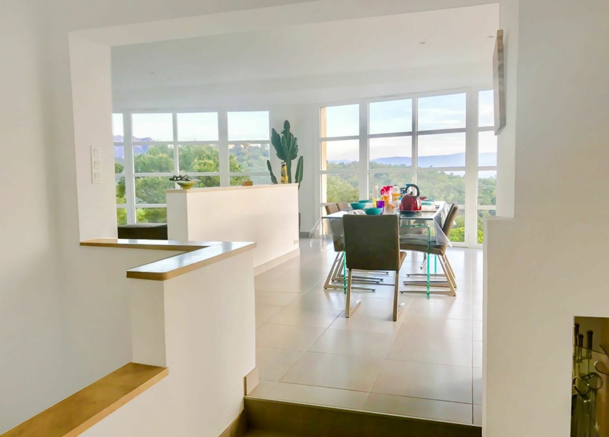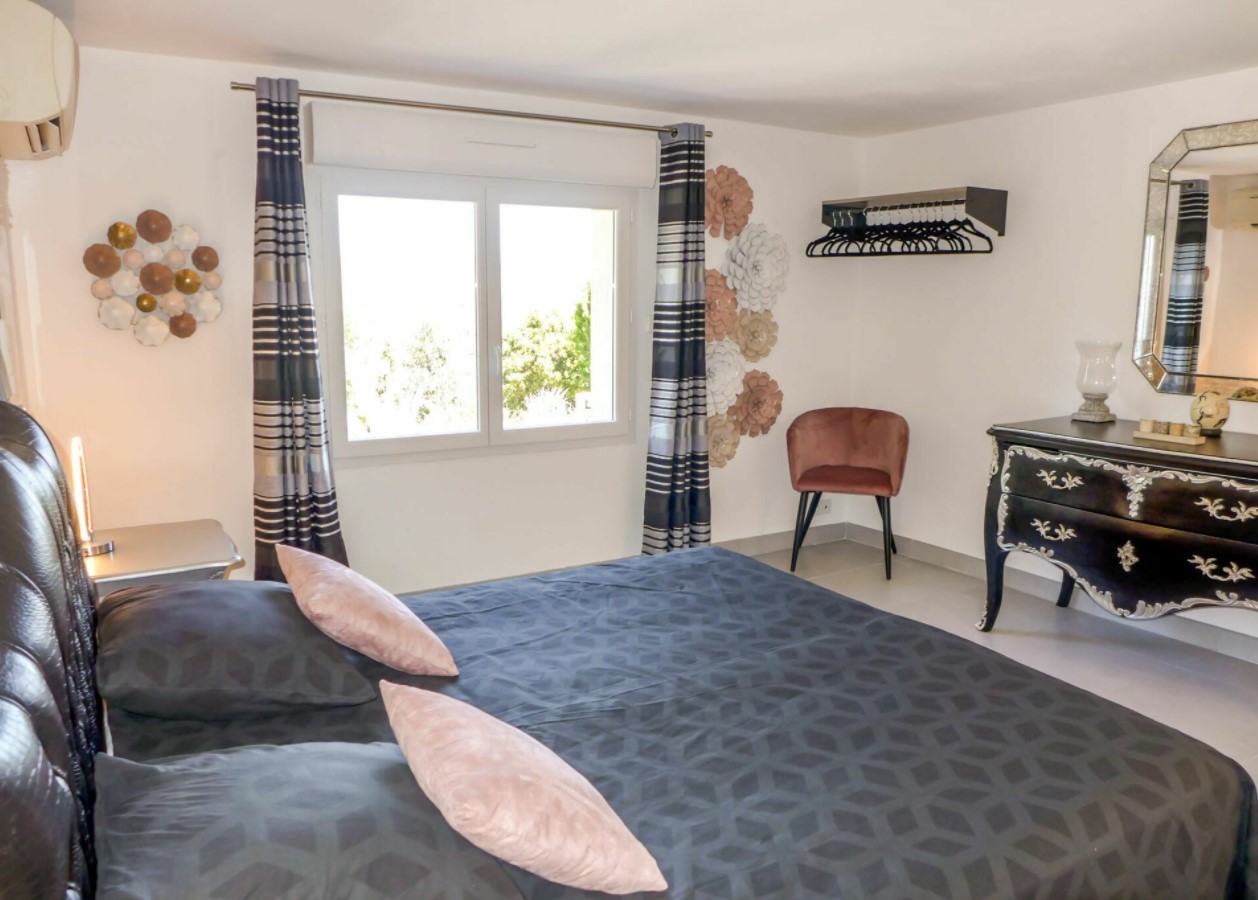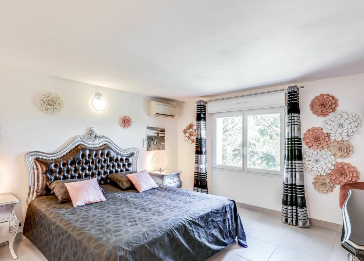 Location de cette villa sur la Côte D’Azur, une villa de 300 m² sur 2 étages. La villa compte 5 chambres au total et 2 chambres, une salle de bain dans l’annexe.