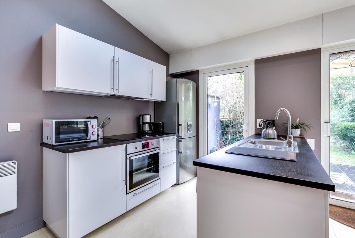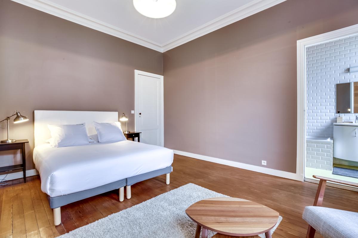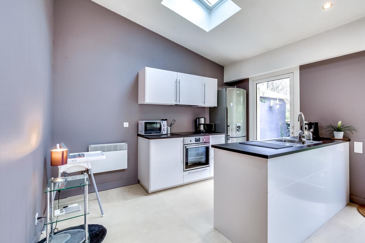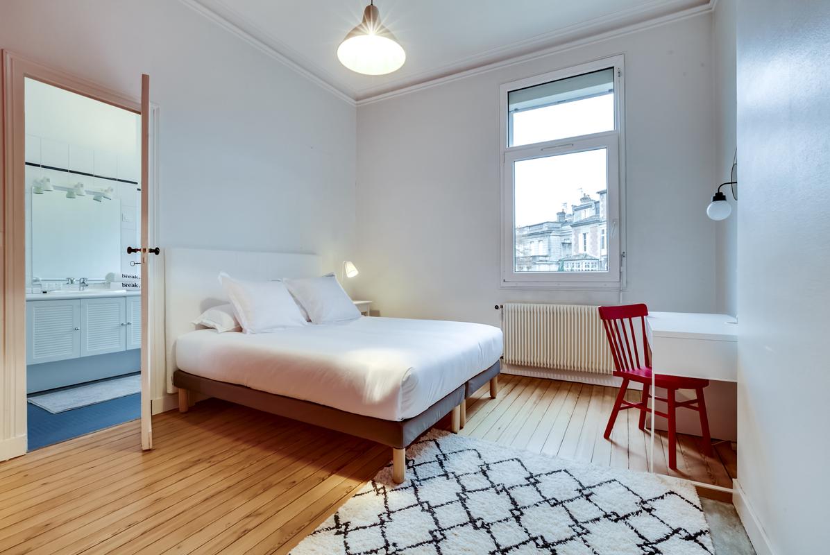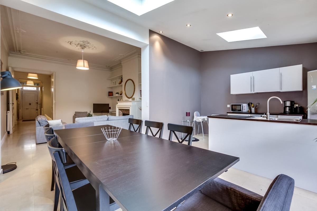 La belle façade en pierre de taille, les hauts plafonds moulurés, les petits balcons en fer forgé : la maison a conservé toutes les caractéristiques des maisons de ville bordelaises. Lorsque vous entrez, vous trouverez une maison chaleureuse et accueillante, meublée avec goût et une élégance discrète, chic et tendance.