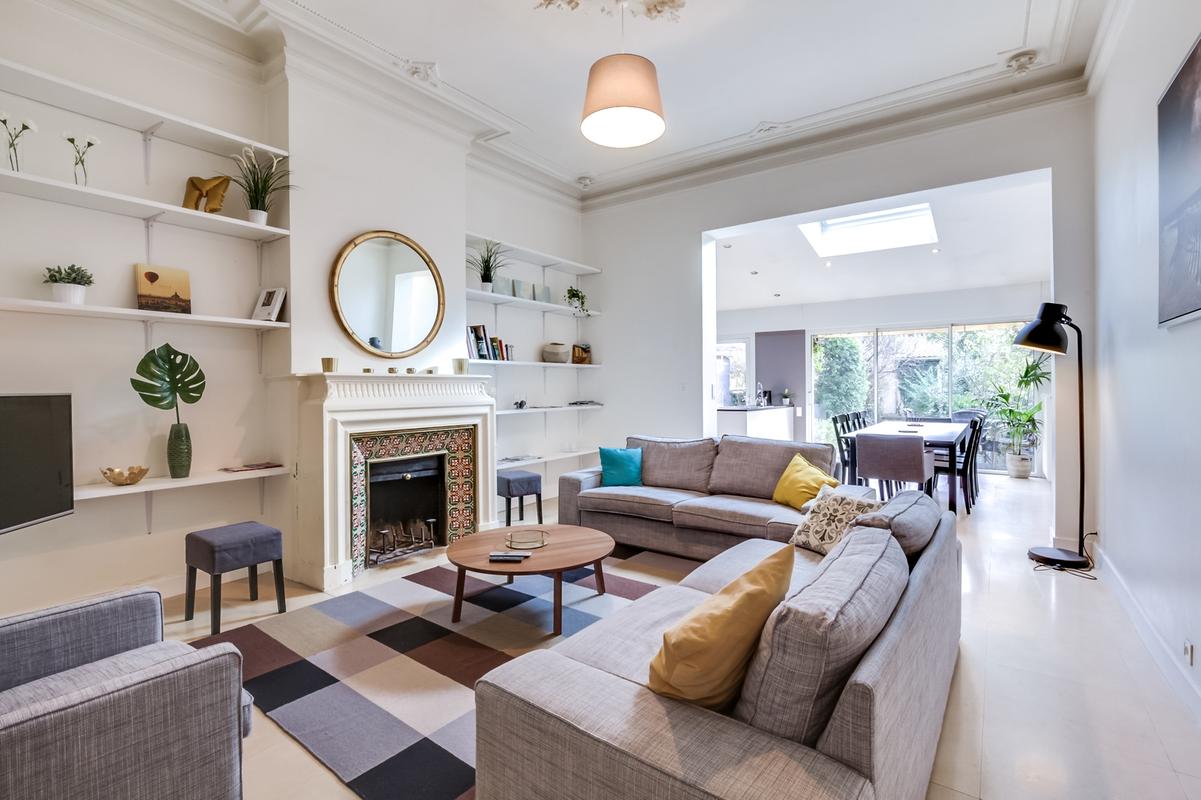 La maison est répartie sur trois étages, avec un studio supplémentaire dans le jardin.