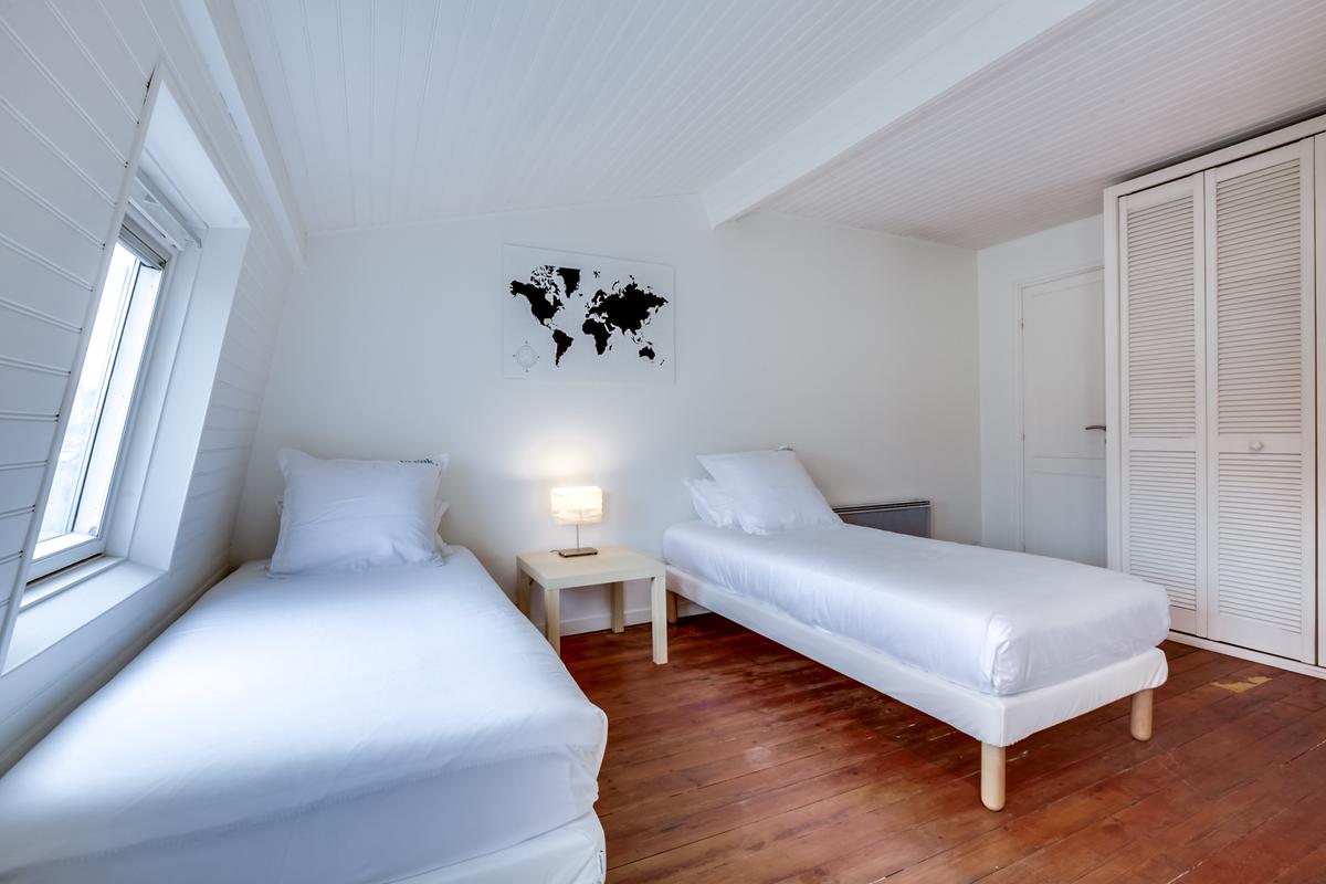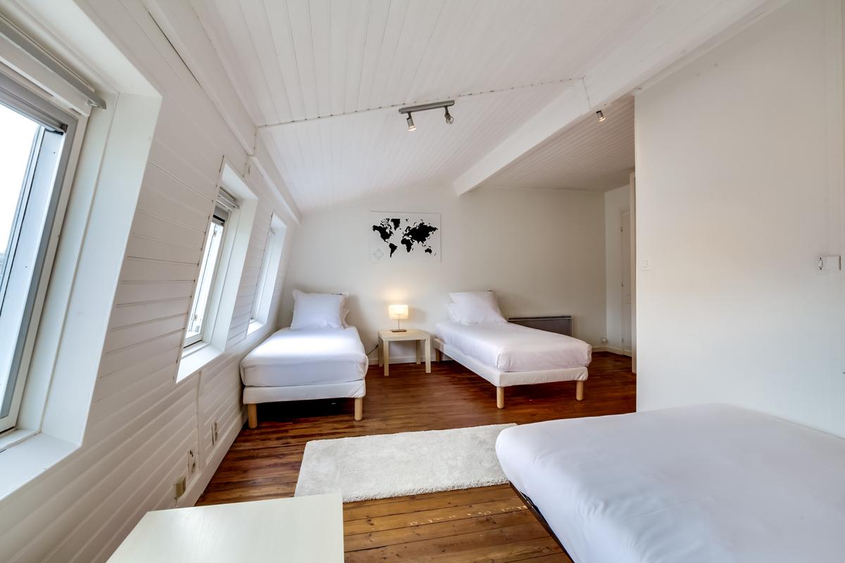 – Chambre à coucher 4, lits jumeaux (90 cm chacun) et un canapé-lit double, salle de douche attenante (douche)