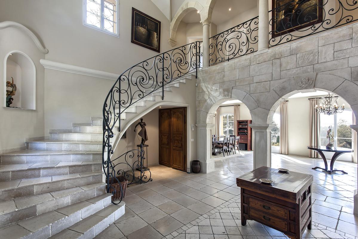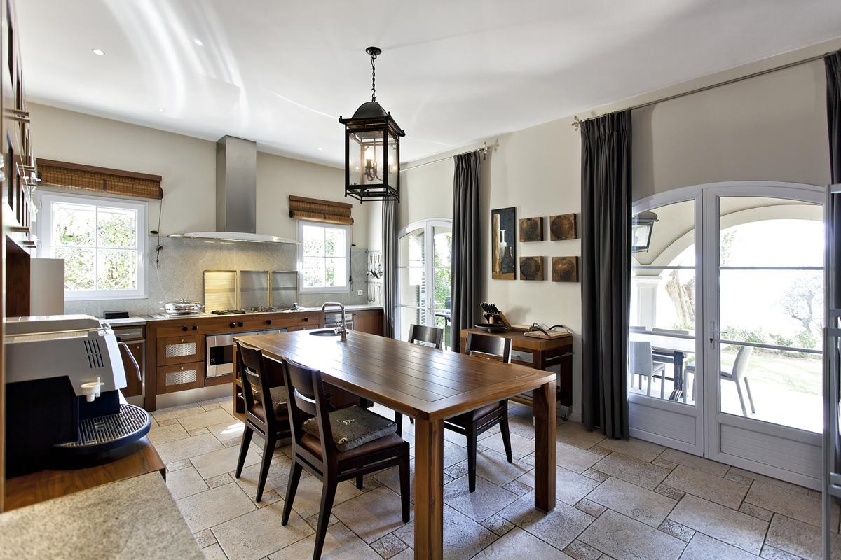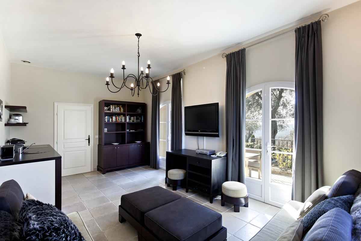 En fait, cette villa de luxe possède de grandes pièces de vie, un salon séjour de 80 m² et équipé en mobilier confortable. Puis, un espace télévision avec cheminée, écran plat reliés par satellite comme tous les téléviseurs de la villa. Le salon donne directement sur la terrasse de la piscine. Et en plus, de là une belle vue sur le Royal Golf Mougins et l’Esterel. En fait, une autre terrasse couverte avec espace repas équipée avec barbecue et une table pour recevoir 10 convives.
