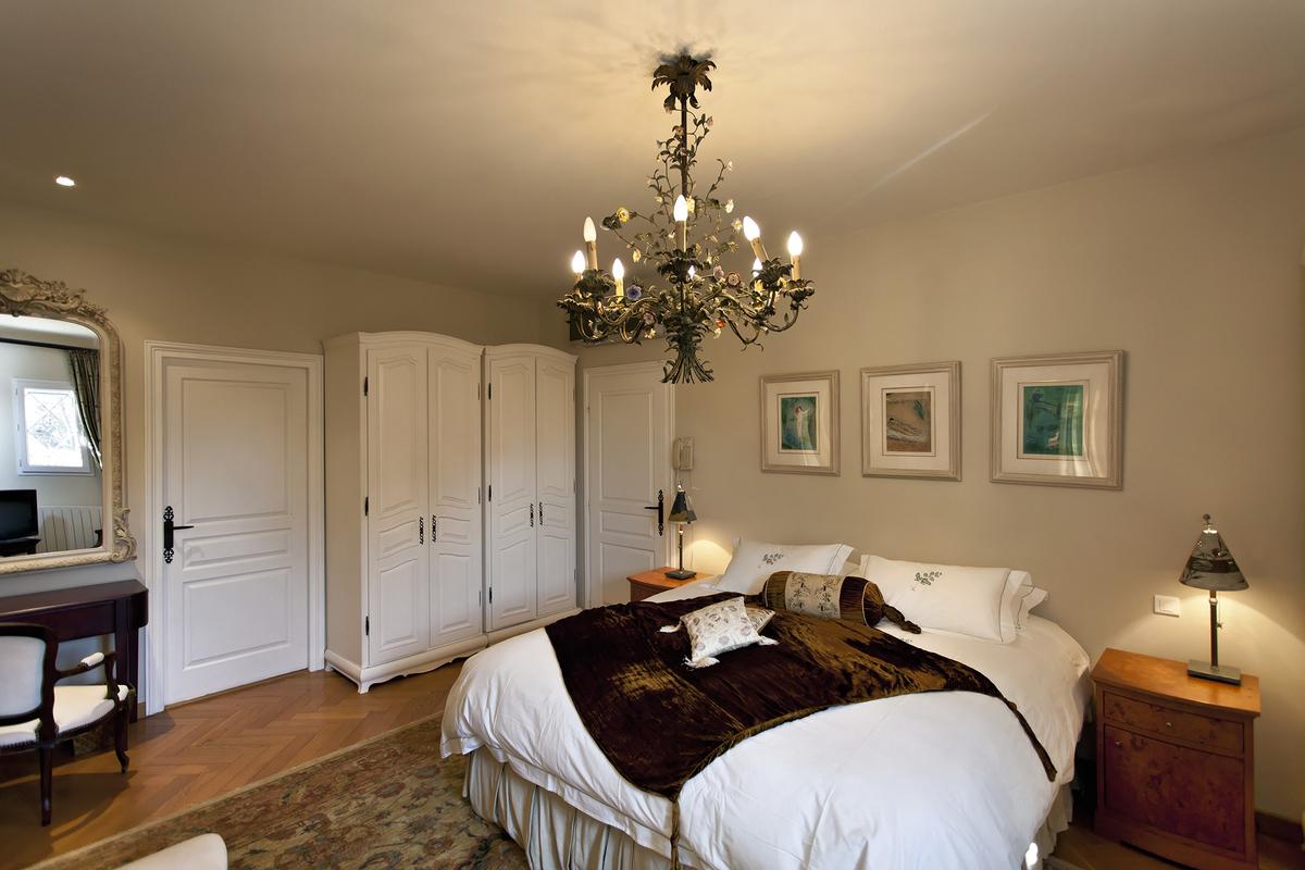 Chambre 3 : lit King (200 x 200cm) Salle de bains attenante avec douche, baignoire, double lavabo et toilette.