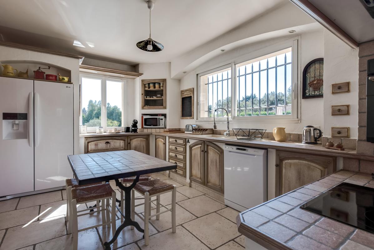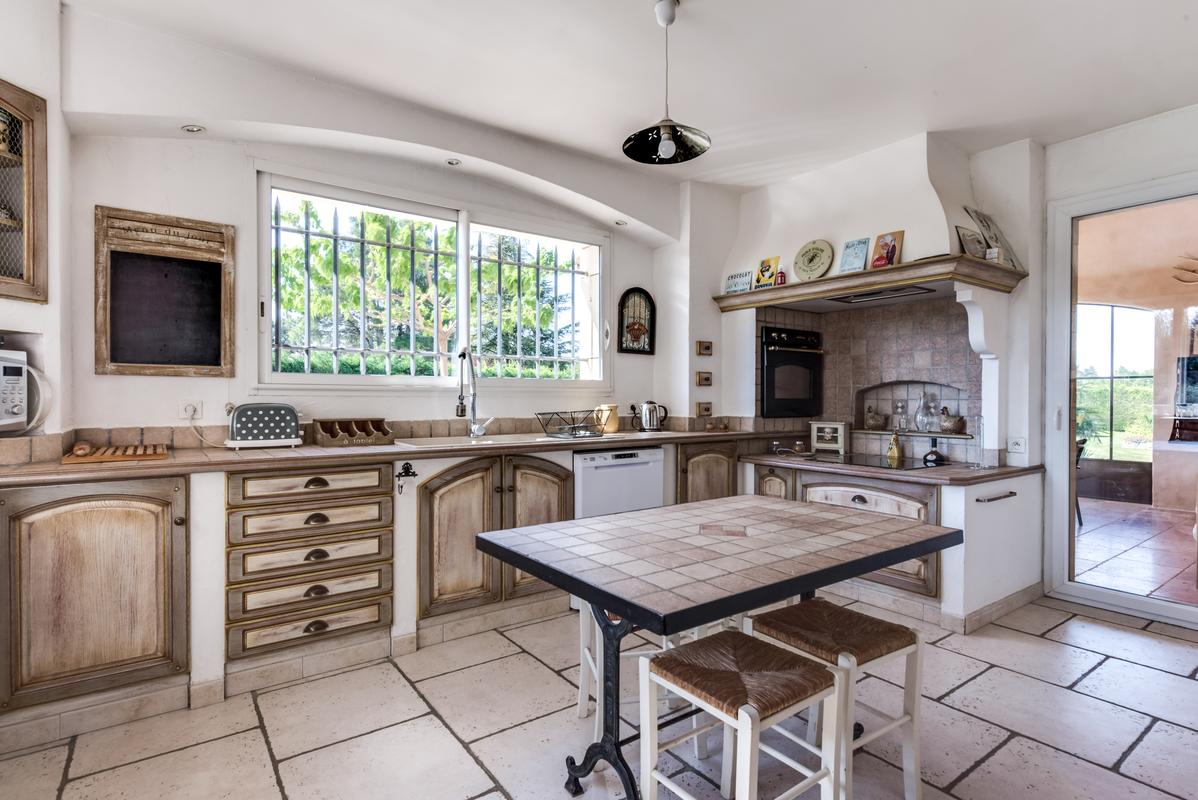 – Cuisine, accès à la terrasse couverte