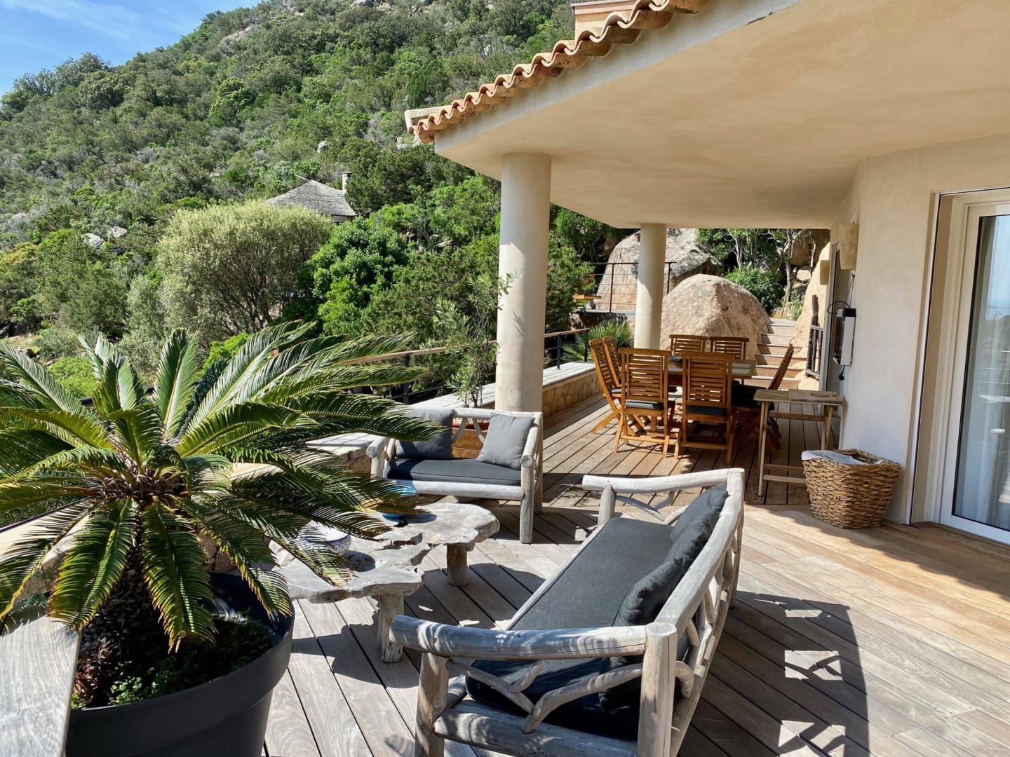 La villa se trouve le long de la jolie route de Palombaggia, dans ses hauteurs paisibles surplombant la fantastique plage du même nom…
