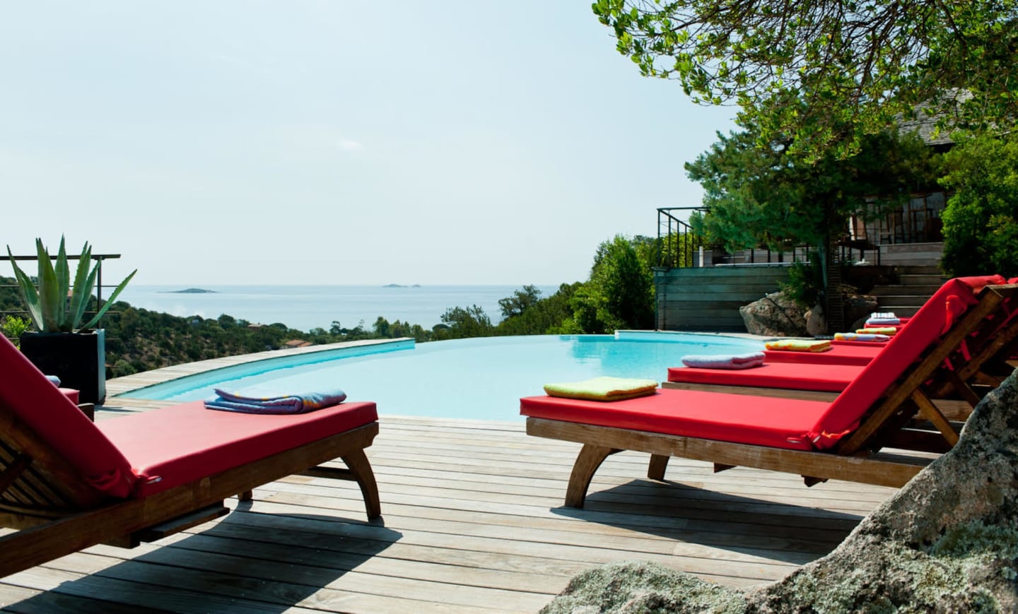 La villa a été construite dans les collines au sud de Porto Vecchio, surplombant la mer dans un cadre de garrigue corse typique.