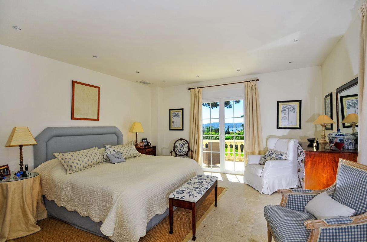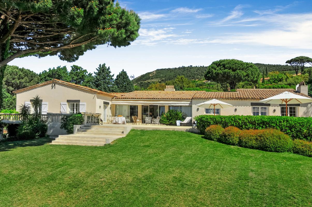 Villa de luxe à Ste Maxime proche de St Tropez. Cette élégante villa avec 4 belles chambres, un seul niveau de plain pieds, se trouve sur un terrain magnifiquement entretenu avec vue sur le golfe de St Tropez . La villa est luxueuse et élégante, décorée dans des couleurs fraîches avec des sols en pierres et de grandes fenêtres donnant sur la baie.