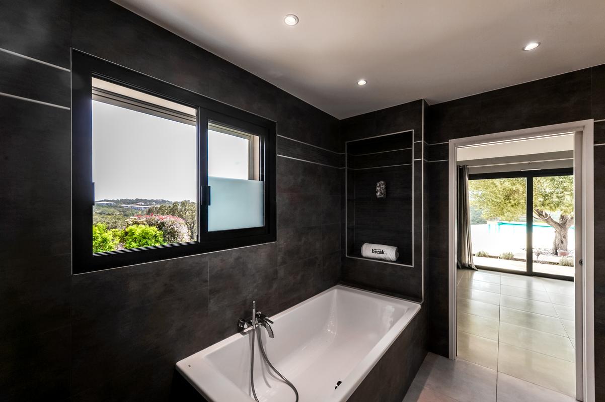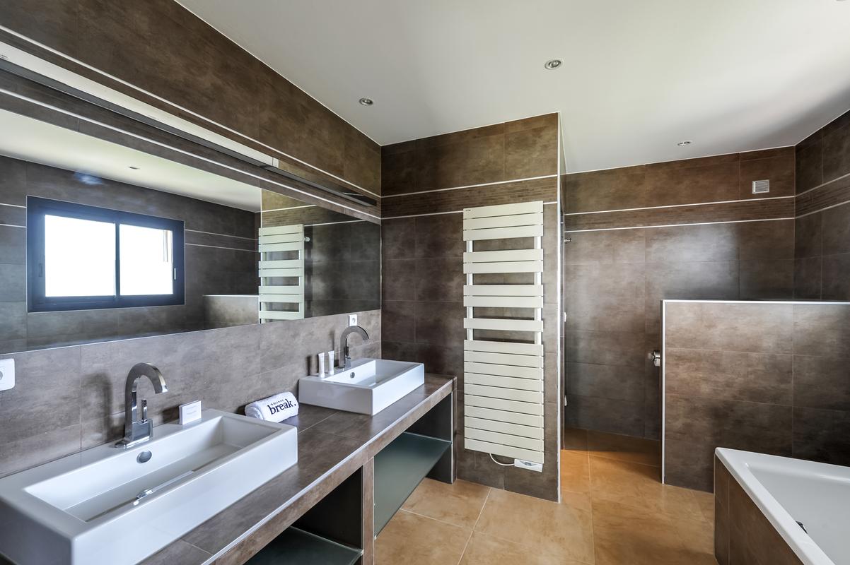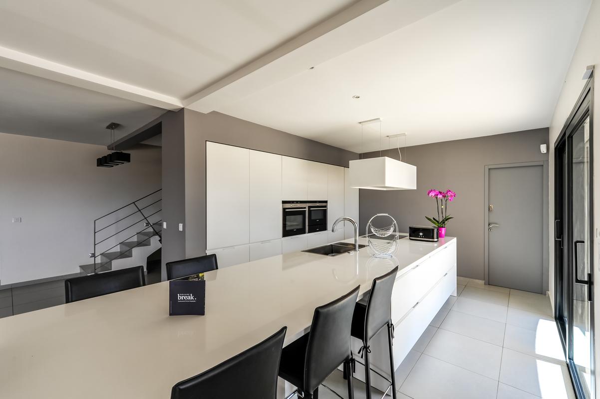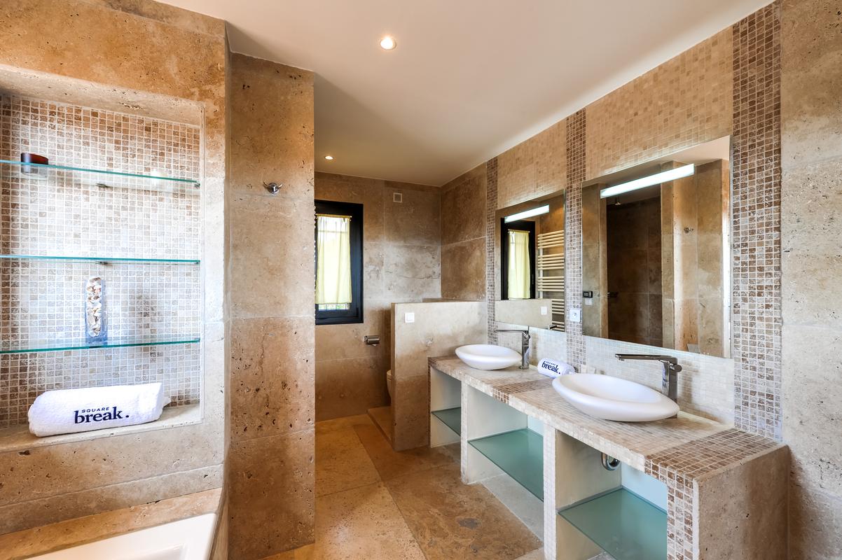Havre de paix, la villa a toutes les raisons de vous mettre en mode vacances. Une grande piscine de 12x6m pour se rafraîchir et essayer quelques longueurs, des transats pour prendre un bain de soleil et profiter de la vue, le barbecue à gaz et la grande table pour accueillir tous vos invités pour des soirées en plein air. Le vaste espace de vie, donnant sur l’extérieur, est composé d’un salon/salle à manger et d’une cuisine moderne et pratique. Vous apprécierez son espace lumineux et aéré ! Chaque chambre à coucher a sa propre salle de bain – ou salle de douche – offrant à tous les invités dans la villa plus d’intimité et d’indépendance. Mise en page :