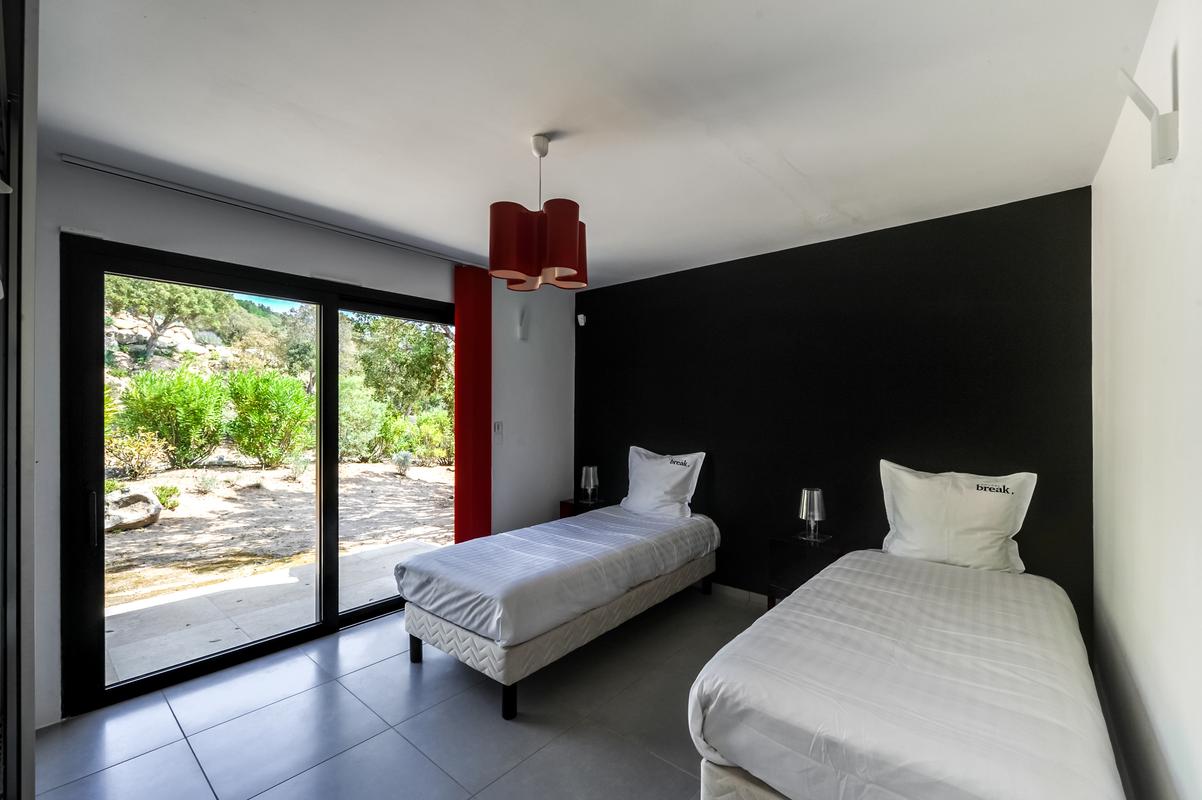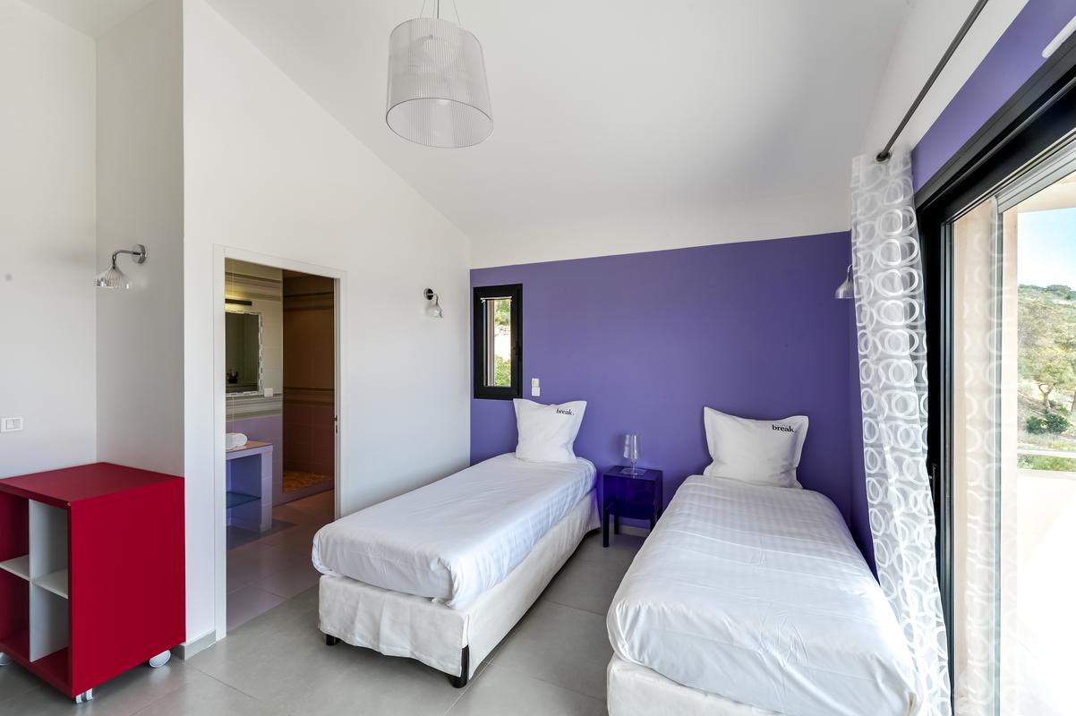 La villa est située sur les collines ondulées au sud de Porto Vecchio. Un cadre très reposant au cœur des beaux paysages corse, mais aussi à proximité de la marina et du golf de Santa Giulia, site naturel classé et protégé : la belle plage en contrebas (sable, eau cristalline…), bordée par une forêt de pins et un lac, est à environ 4 km de la villa, et vous trouverez des restaurants, un supermarché et diverses activités de loisirs à moins de dix minutes en voiture.